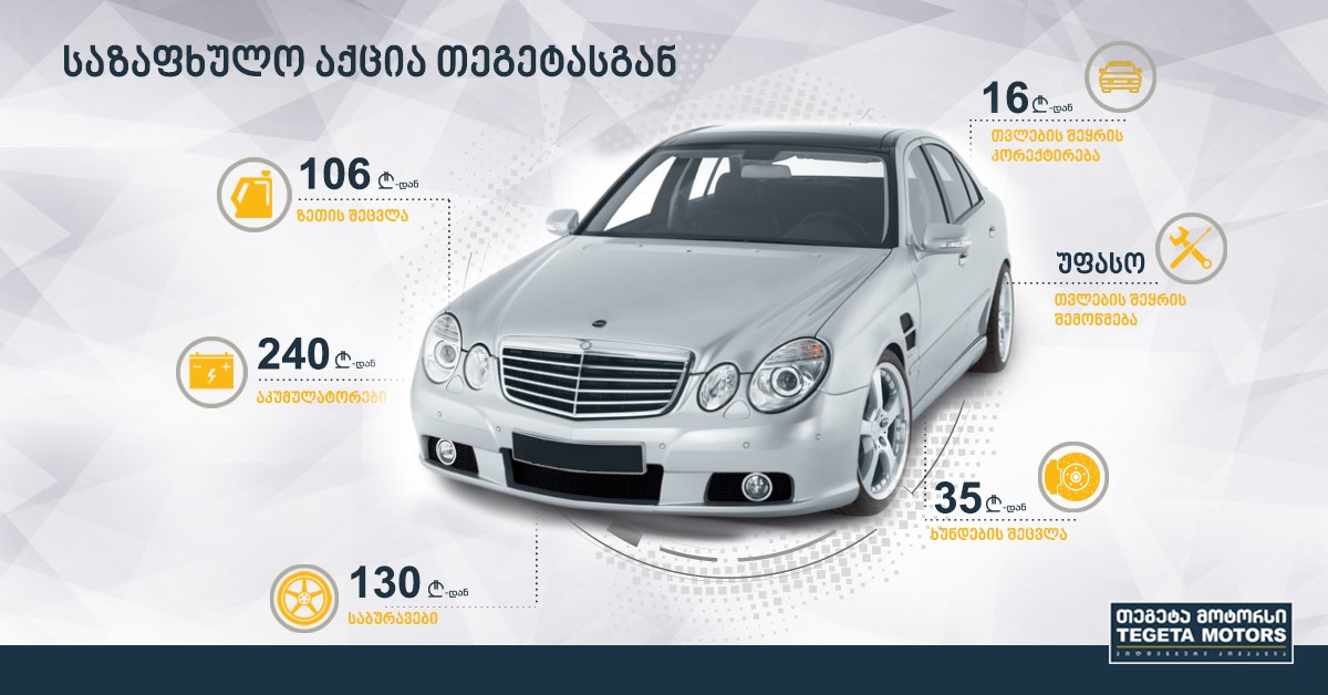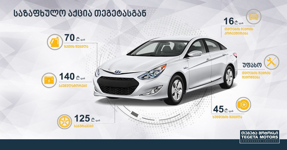 მოდი თეგეტას სერვის ცენტრებს და ისარგებლე სპეციალური ფასებით შენი ავტომობილის საბურავზე, ზეთზე, აკუმულატორზე, ხუნდებზე და რაც მთავარია ისარგებლე უფასო სერვისებით